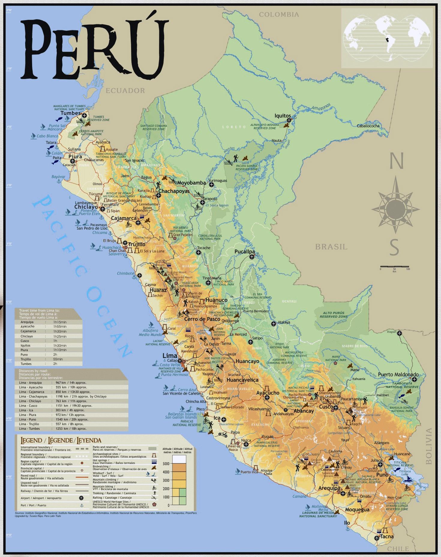 Žemėlapis Peru, kelionės. Peru kelionės žemėlapis (Pietų Amerika - šiaurės ir pietų Amerikos) spausdinti. Peru kelionės žemėlapis (Pietų Amerika - šiaurės ir pietų Amerikos) atsisiųsti.